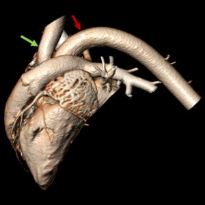 This image is a 3D reconstruction of cardiovascular anatomy acquired using IMMR’s state-of-the-art 64-slice gated CT scanning system and 3mensio 3D reconstruction software.